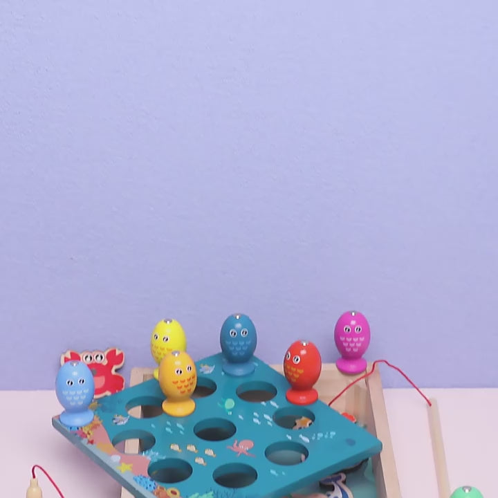 The magnetic game made of high-quality wood provides a safe and durable play environment. The small fish are in various colors and shapes and offer active learning opportunities that are very beneficial for your child's mental and motor development.