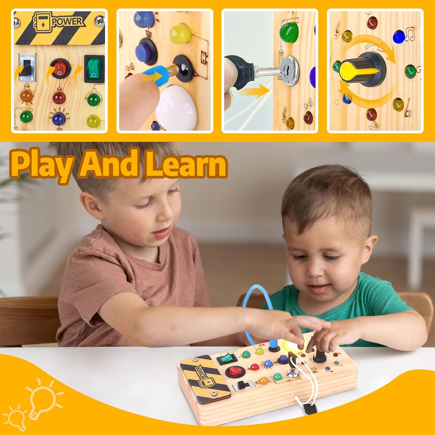- Promotes curiosity & motor skills: The Montessori Busy Board is the perfect learning toy for toddlers. When switches are activated, LED lights illuminate and promote color recognition as well as creative thinking.