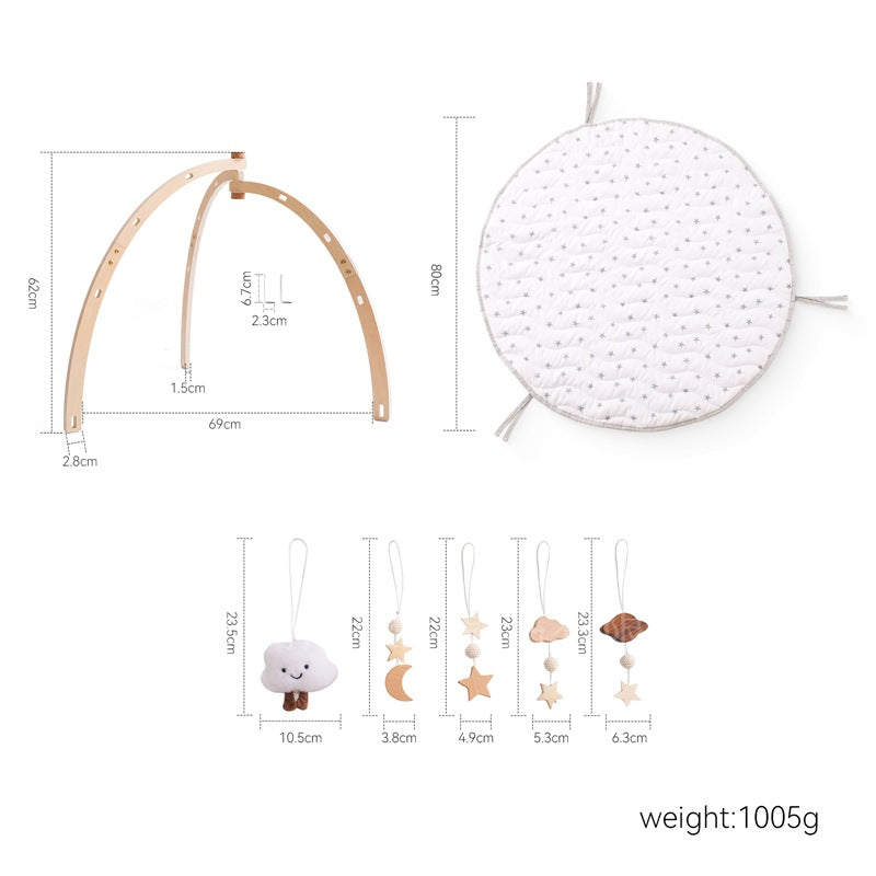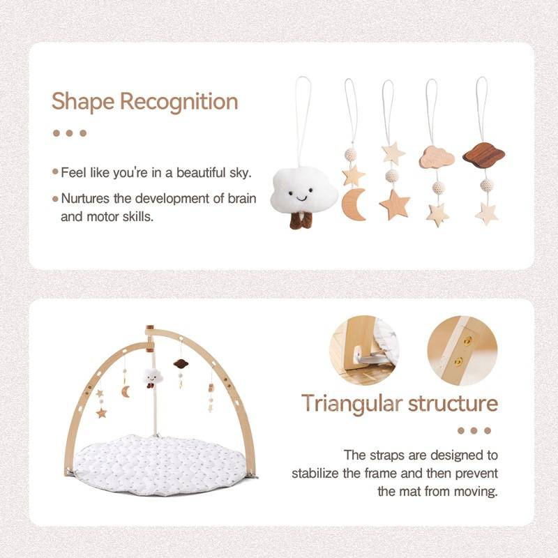 Gimnasio de madera para bebés con alfombra de juegos – Nubes y estrellas