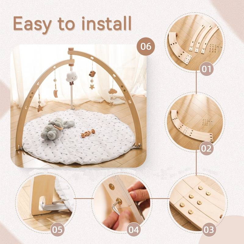 - Arco de juego de madera resistente con almohadillas antideslizantes.