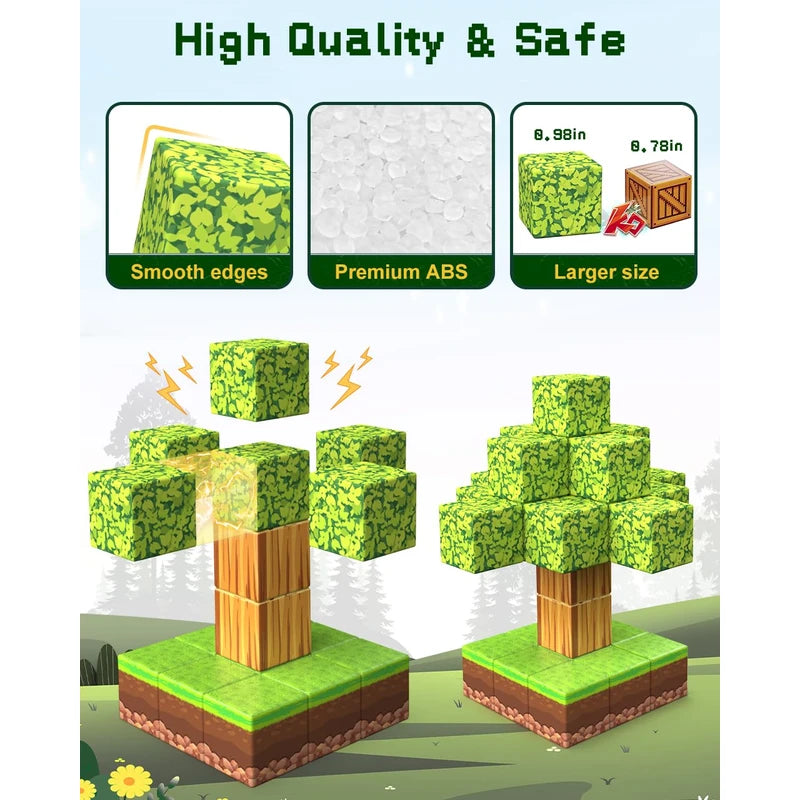 Crecí con los mundos pixelados de Minecraft, donde la creatividad no tenía límites. Inspirado por esto, me propuse desarrollar bloques de construcción magnéticos que dieran vida a estos paisajes digitales. El objetivo era simple: crear un set que permitiera a los niños construir, explorar e imaginar, igual que en el juego, pero con bloques de construcción reales en sus manos.