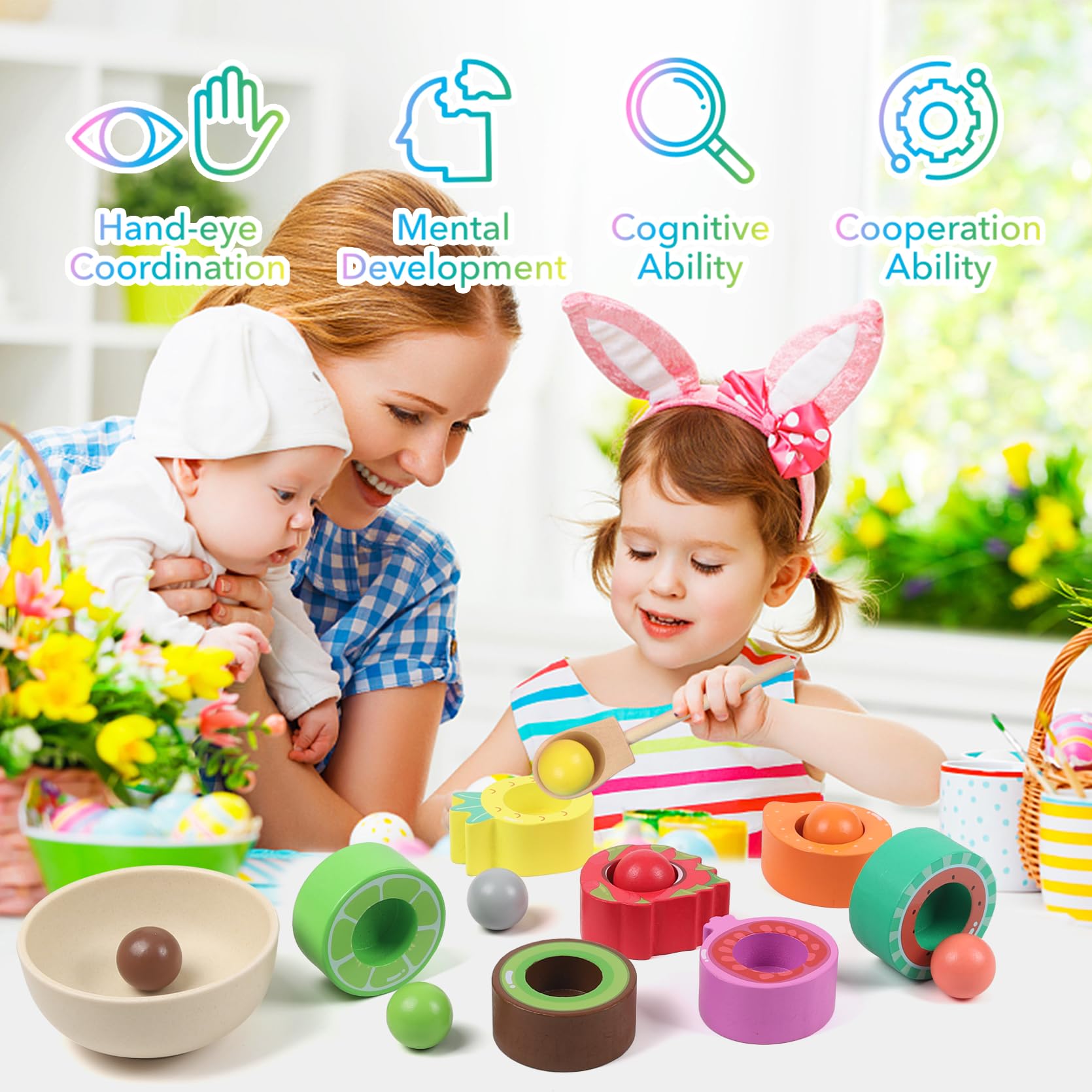 Nuestros juguetes Montessori para la motricidad fina de bebés estimulan a los niños a partir de 1 año de edad a través del juego. Incluye vasos de frutas de colores, pelotas de madera y una cuchara para promover la motricidad fina, la coordinación mano-ojo y el reconocimiento de colores y frutas.